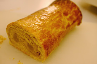 Ezek mellett elkészült az első bejglim is. Dió hiányában marcipánosat készítettem. Valami isnteni finom lett! Az én családomban a kalács-szerű bejgli a szokás, míg Balázséknál a hagyományos, omlós tésztájút szokták készíteni (Balázs mamája isteni bejglit szokott sütni). Ezúttal én is egy omlós tésztájút választottam, mert ez most egyszerűbbnek tűnt. Ezt a receptet követtem. Az eredmény egy nagyon finom, omlós, de nem töredezős, napokkal később is puha bejgli lett. A marcipános töltelékhez kb. fél deci vizet felforraltam néhány evőkanál porcukorral, tettem bele pici mandula szirupot is (rum sem ártott volna bele). Majd levettem a tűzről és belekevertem 15 dkg darált mandulát. Kóstolás után tetttem hozzá még pici porcukrot és miután kihűlt, betöltöttem a tésztába. Ehhez írnék egy tippet: a tésztát sütőpapír és folpack közé tettem és így nyújtottam. Így nem ragad, nem szakad, nem kell lisztezni. Miután kinyújtottam, rákentem a tölteléket, ennek egy részére tettem pöttyökben baracklekvárt és feltekertem. Majd a recept szerint pihentettem, tojással lekentem, megszúrkáltam és kisütöttem. A baracklekvárral ízesített rész még finomabb lett, mint a sima. Próbáljátok ki! Tényleg nagyon finom! Én csak egy rudat készítettem, de pár nap alatt el is pusztítottuk :)