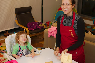 Néhány hete elkészültek az idei első linzerek. Egyik szombaton közös családi linzersütés volt nálunk :) Az a jó a linzerben, hogy pár perc összedobni és a hülés után már jöhet is a móka: nyújtás, szaggatás, sütés és persze a kóstolás. Nórinak beszereztem pici sodrófát és formákat. Nagyon tetszett neki :) Azóta már többször is használtuk ezeket.