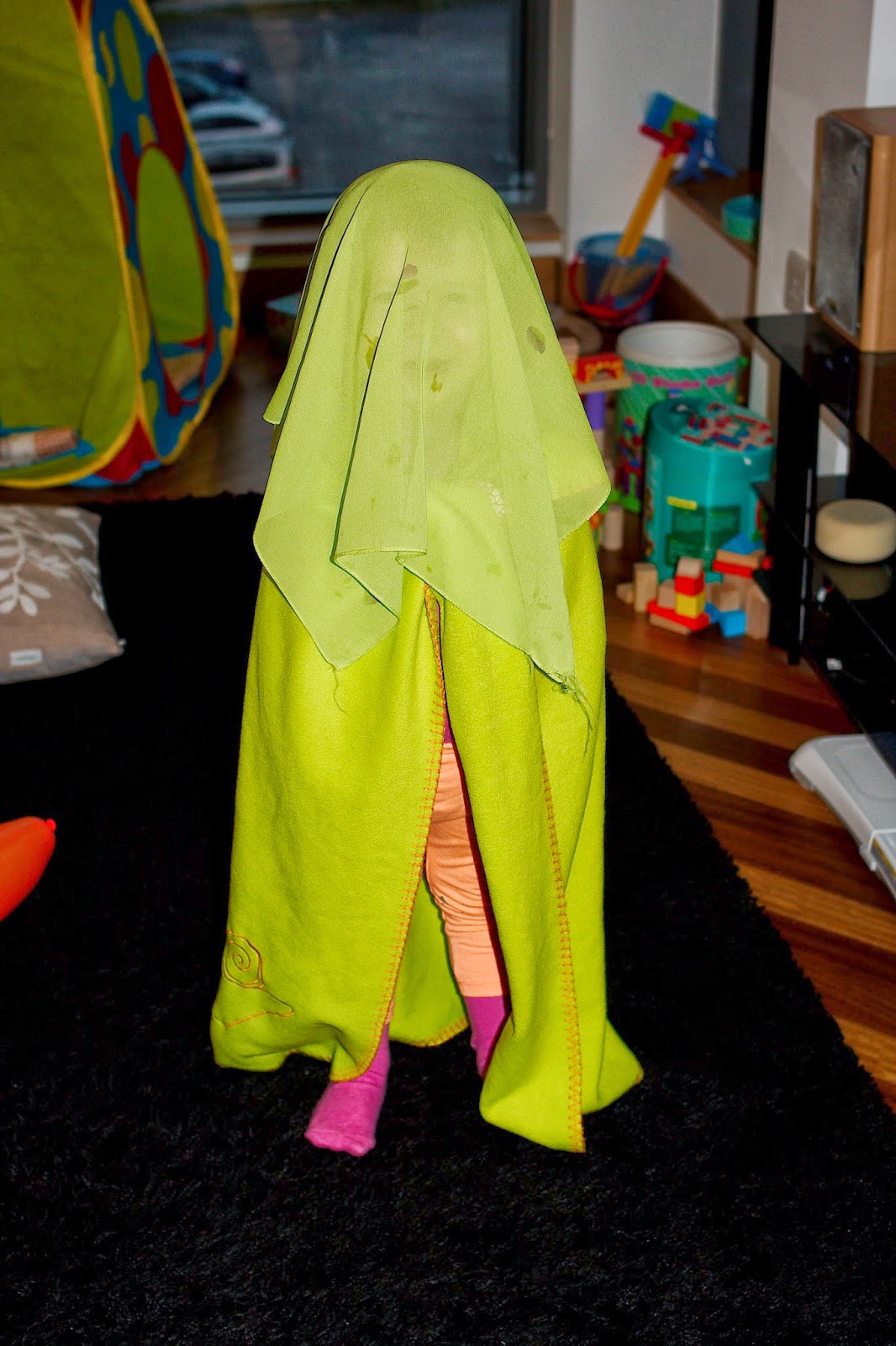Nóri felcsatolja a cicafület a fejére (ami a Halloween-i jelmezéhez készült). Kérdezem tőle: "Nóri neked mi van a fejeden?" Mire Norci: "A fülem!"