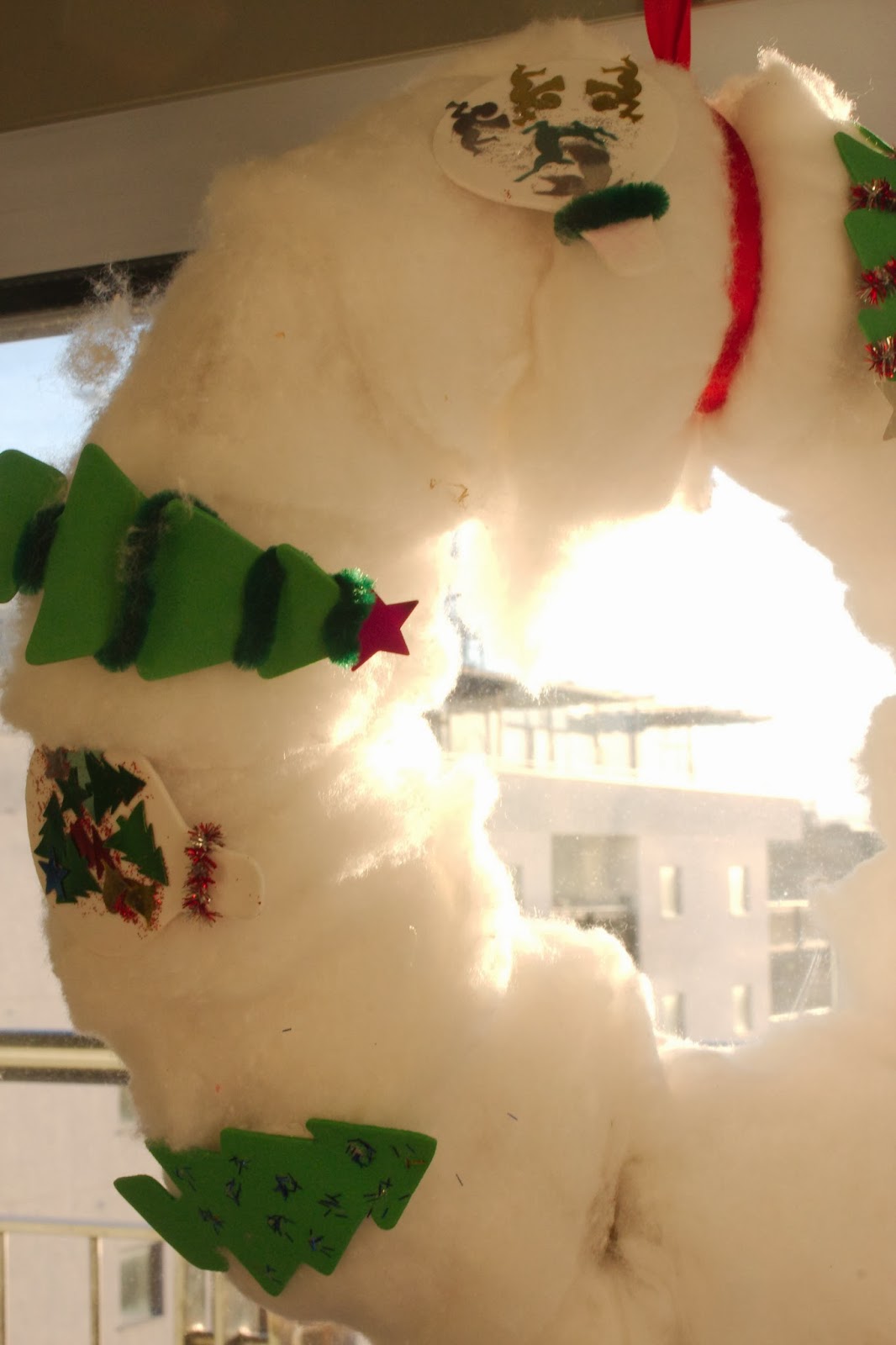 Ezt a koszorút is közösen csináltuk Nórival. A díszeket teljesen egyedül készítette el.