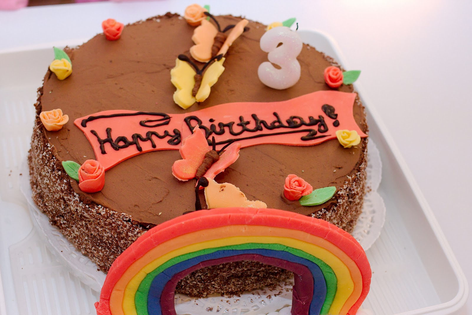 Idén is csokitorta volt Nóri kérése. Így egy trüffelkrémes csokitortát készítettem, amit apró rózsákkal, pillangókkal és egy szivárvánnyal díszítettem. Nóri teljesen odavolt érte! És persze a gyerekek is. Mondta az óvó néni, hogy mindenki a szivárványból akart enni :) Mivel minden dísz ehető volt, így el is csemegézték a gyerekek :)