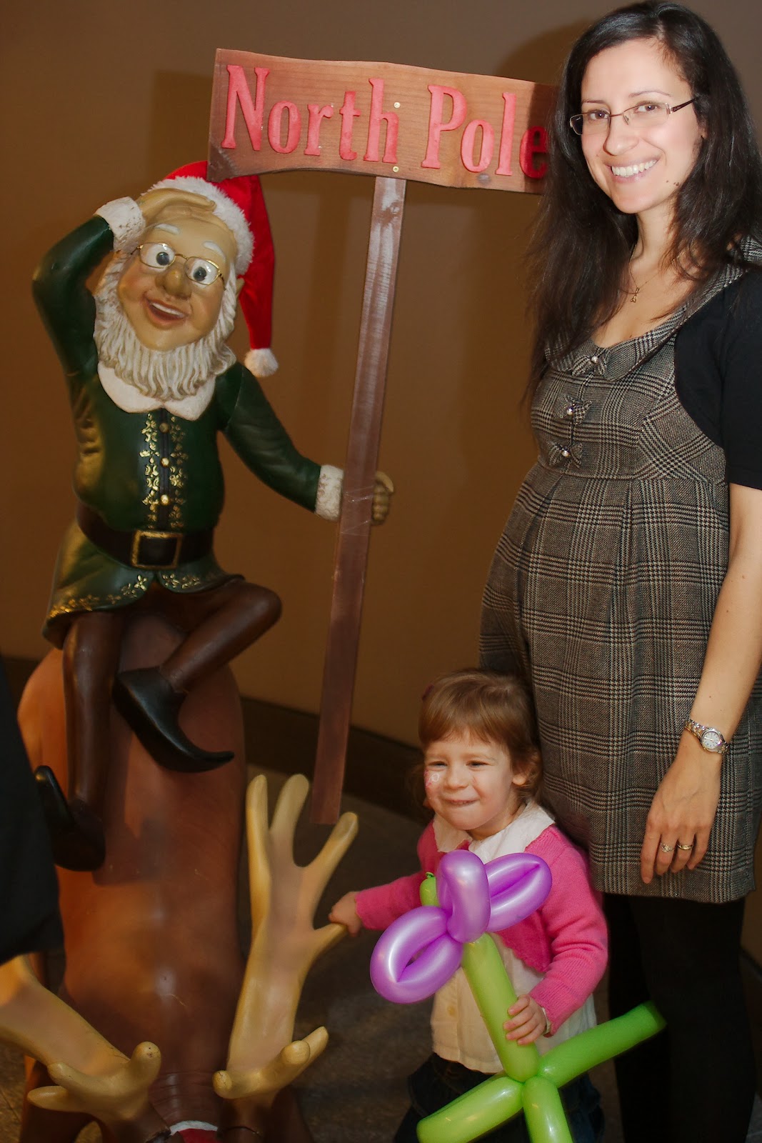 Az emeleten volt a Mikulás barlangja. Ide elég hosszú volt a sor. Nagyobbaknak volt ezen az emeleten filmvetítés, de ez Nórit nem kötette le. Mivel nem akartuk, hogy Nóri unatkozzon közben, ezért én beálltam a sorba, Balázs pedig addig elvitte Nórit mézeskalácsot díszíteni, de voltak arcfestésen, illetve Nóri kapott egy lufivirágot is. Szóval nem unatkoztak. Aztán már csak pár percet kellett várnunk és mehettünk is a Mikuláshoz. Nóri kicsi meg volt szeppenve, de mikor hozták az ajándékot oda mert menni a Télapóhoz. Sőt, még egy dalt is elkezdett énekelni neki.