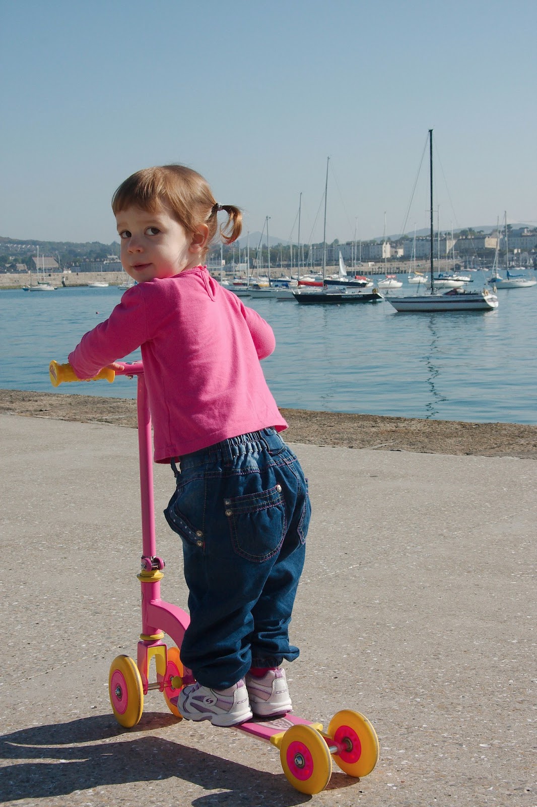 Egyik délután hatalmasat sétáltunk Nórival. A rollerjével mentünk ki. Egyszer csak keresztben ráállt a két lábával, elengedte a kormányt és meghajtotta a rollert. Kérdeztem, hogy mit csinál, mire közölte, hogy "A Baba gördeszkázik."