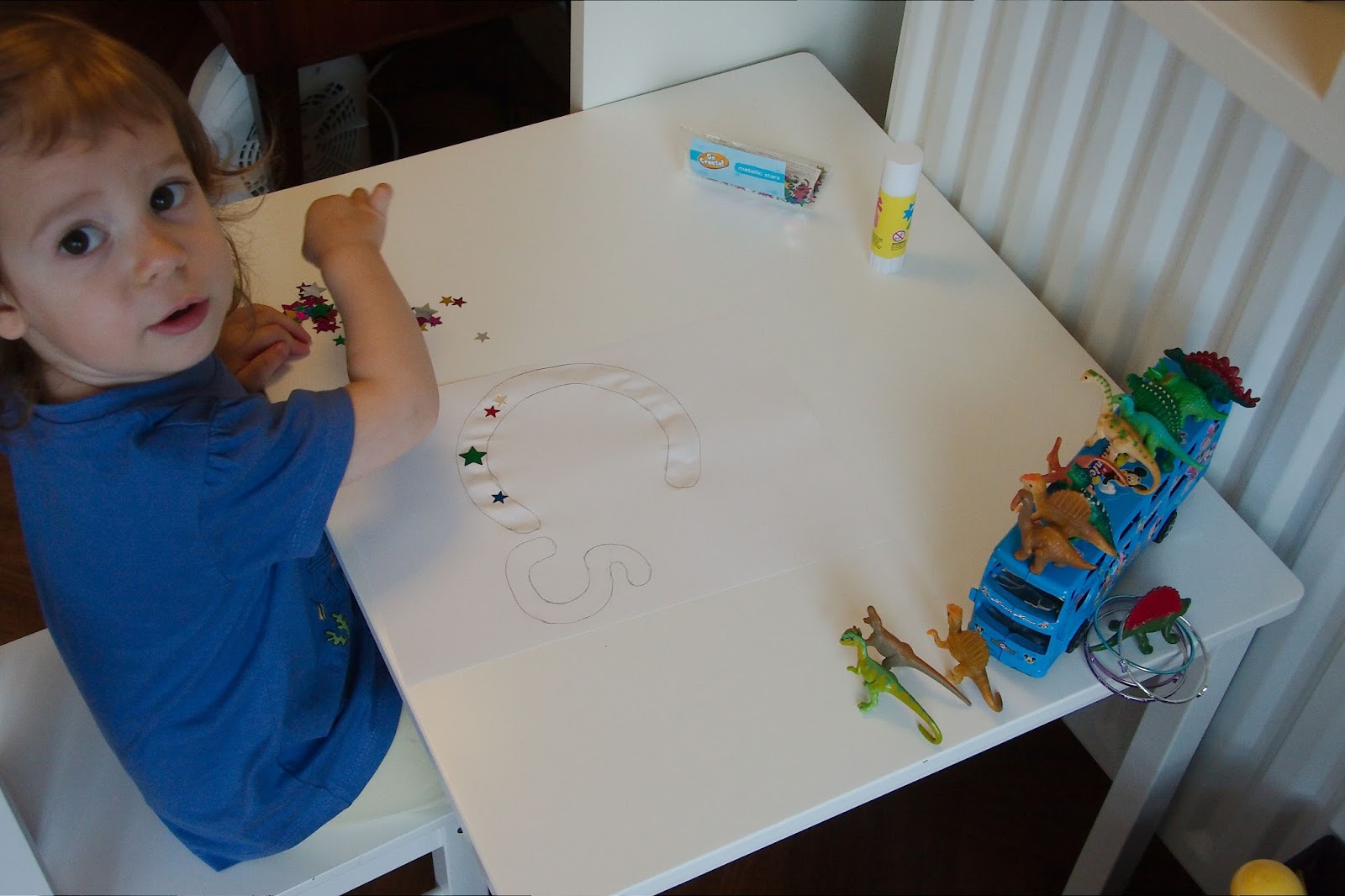 Beragasztóztam a betűt és megkértem Nórit, hogy ragasztgassa rá a csillagokat. Amikor ezzel elkészült elővettük a csillámokat és ezzel is megszórta a betűket.