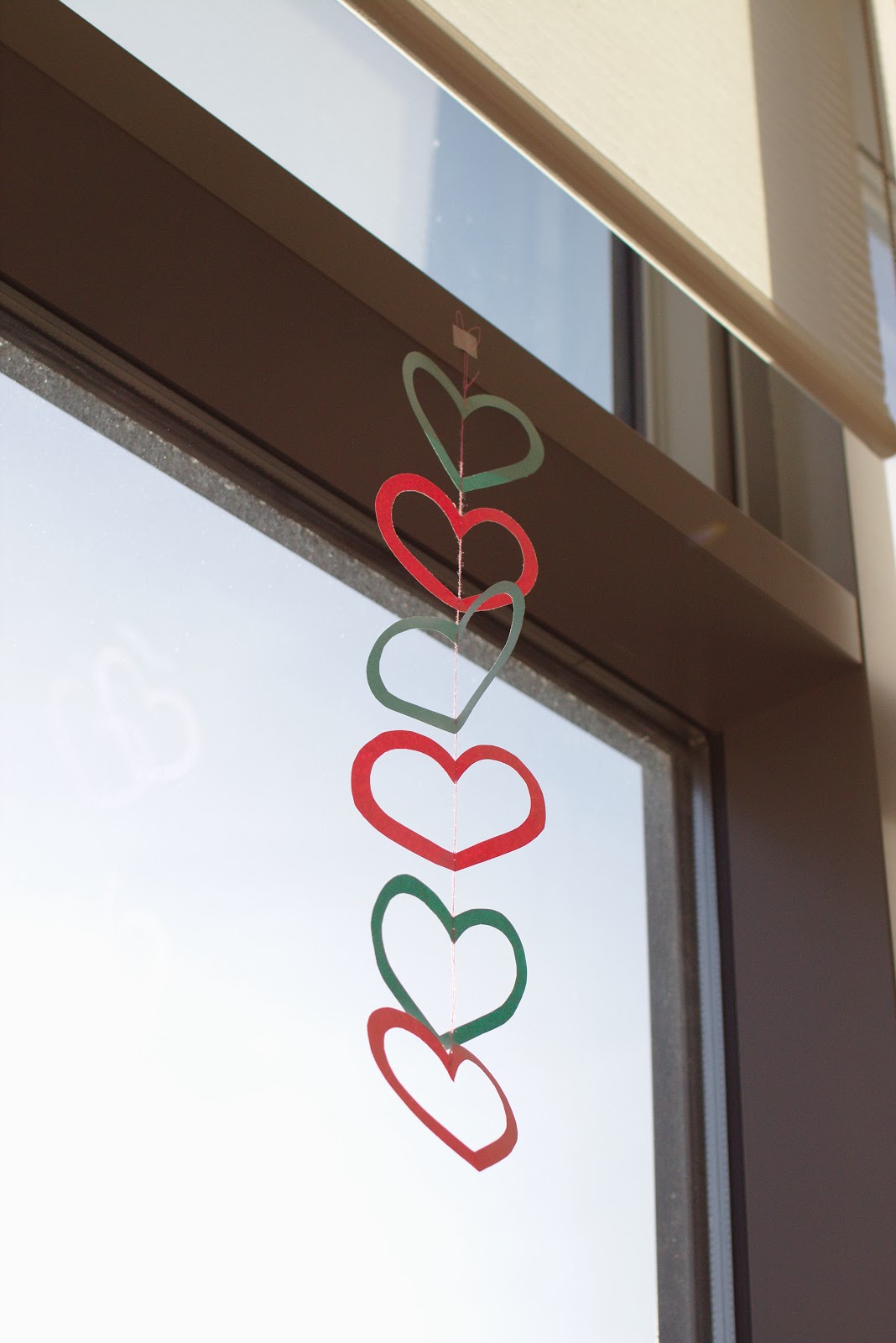 Rengeteg szívecskét szineztek, festettek, kidekorálták a termet, készítettek képeslapot, sütöttek szív alakú kekszet. Arról nem beszélve, hogy az üzletek polcain is mindenhonnan a szerelmes macik, madarak, szívek köszöntek vissza és Nóri kérdezgette, hogy ezek mik. Szóval megadtam magamat a Valentin-napi őrületnek és itthon is készítettünk néhány díszt.